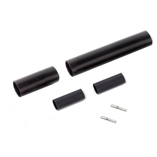 - 2 шт большего диаметра - для изоляции места соединения в целом и концевика греющего кабеля. - Гильзы-коннекторы цилиндрические – 2 шт – для прочного механического соединения греющего и питающего кабеля.