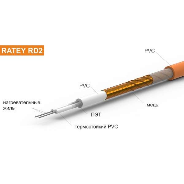 ✔ Кабель RATEY RD2 є двожильний нагрівальний кабель з ізоляцією нагрівальної жили з термостійкого ПВХ пластика, в якому обидві жили є гріють для монтажу системи опалення "тепла підлога" в стяжку.