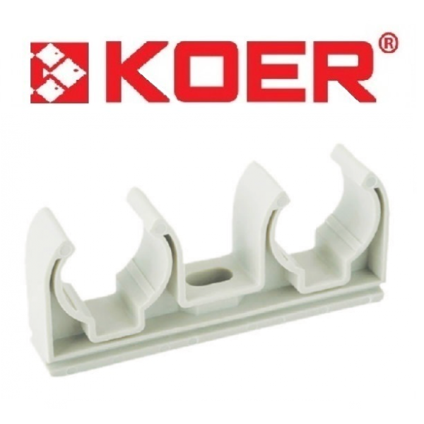 Двойное крепление полипропиленовое KOER 25 мм для труб имеет высокие показатели термостойкости и устойчивость при механических воздействиях.