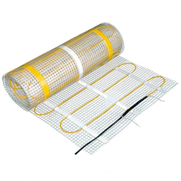 ✔  Нагревательный мат теплого пола IN-THERM мощностью 185 Вт/кв.м  - это термоустойчивая пластиковую сетка шириной 50 см, на которую фиксирующей лентой закреплен двужильный нагревательный кабель. "Горячий" и "холодный" провод проходят в одном подводящем кабеле. Оснащен самоклеющей лентой для приклеивания к полу.