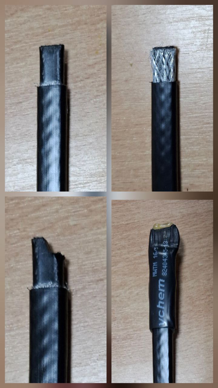 2. Укоротить одну жилу на 5 мм, чтобы жилы не пересекались друг с другом и защитным экраном (фото 3).