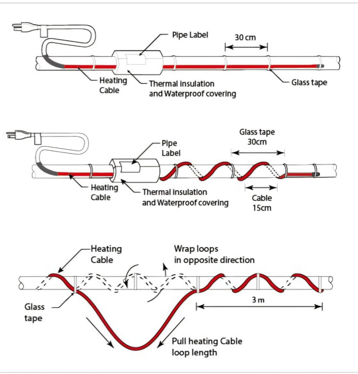 Советы по монтажу греющего кабеля на трубу большого диаметра.