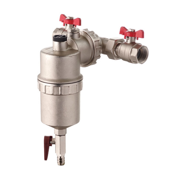 Дешламатор для котлов магнитный 3/4" с кранами необходим для сбора всех присутствующих в системе механических и металлических примесей. Он останавливает их внутреннюю циркуляцию и предохраняет от раннего износа и повреждения других компонентов.